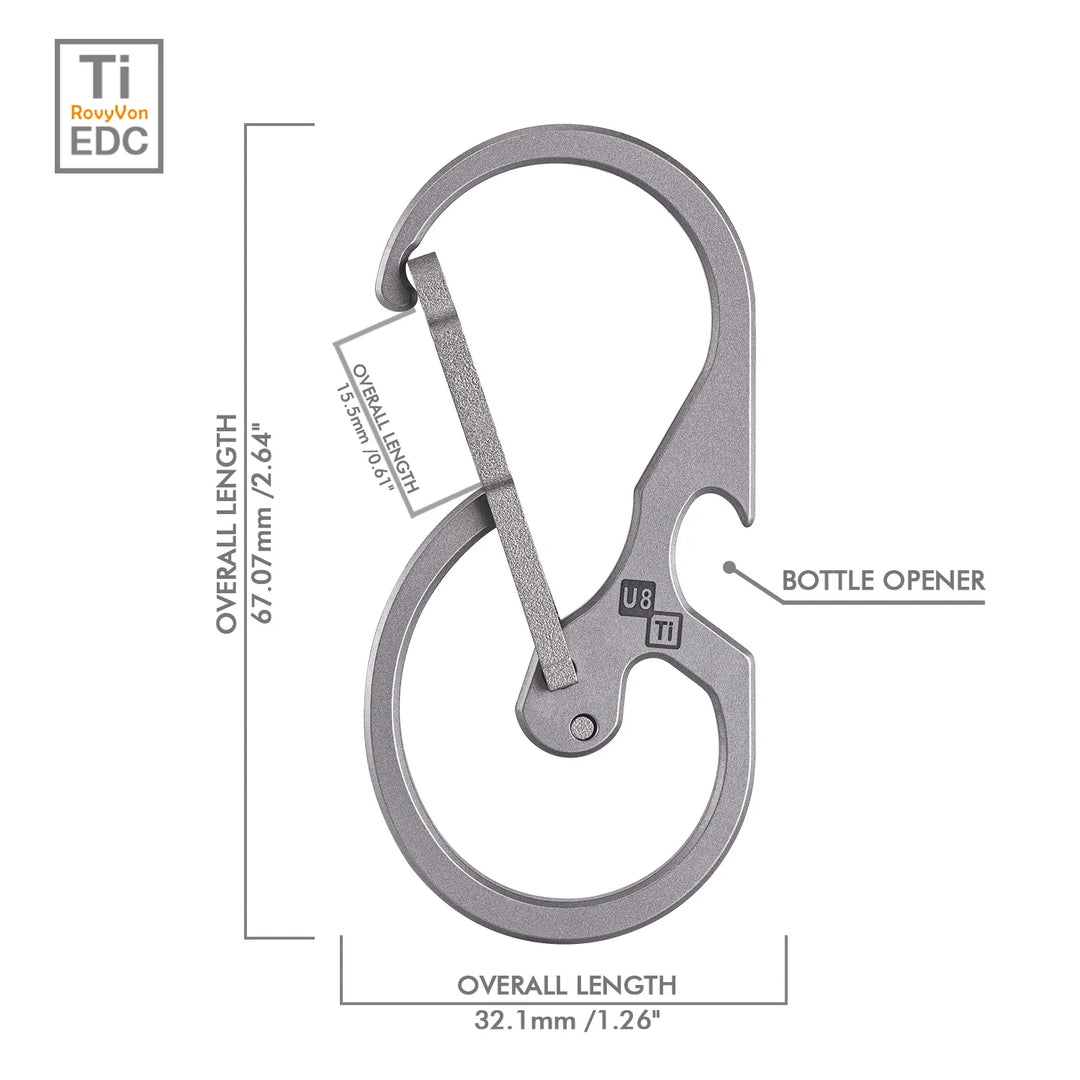 U8 Titanium Keychain Carabiner has been upgraded, just a little bigger than before, but provide more space than before.