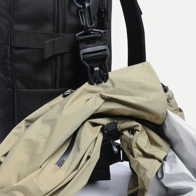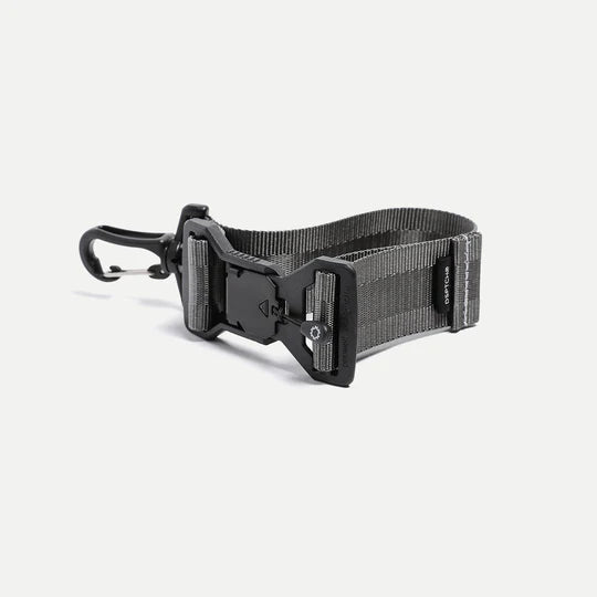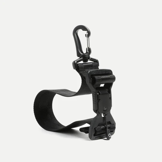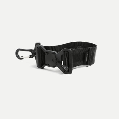 Attachment strap for your bag to clip and carry exterior items such as jackets, sweaters, or many other miscellaneous items. 1.5" webbing attached with a Fidlock slide connector allows you to quickly access and re-attach the item to your pack on-the-go.