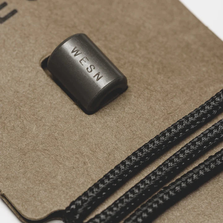 The WESN LB is a stainless steel lanyard and bead that is comfortably suited to fit through the small hole near the bottom of your WESN knife. Not only does the LB add a bit of flare to your WESN blade, it allows for easy retrieval from any bag, pocket, or space you may set your knife.