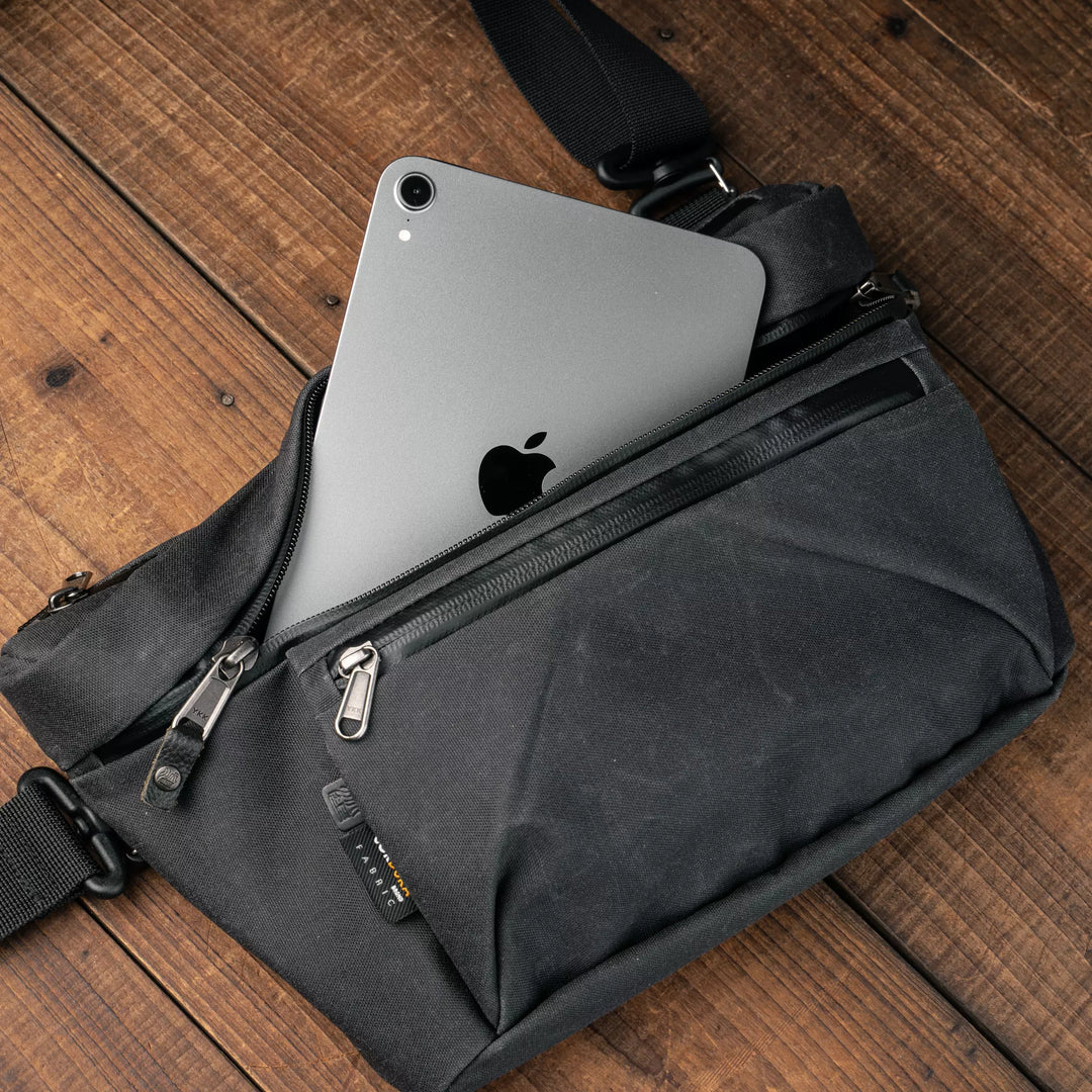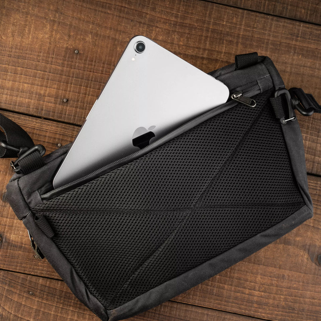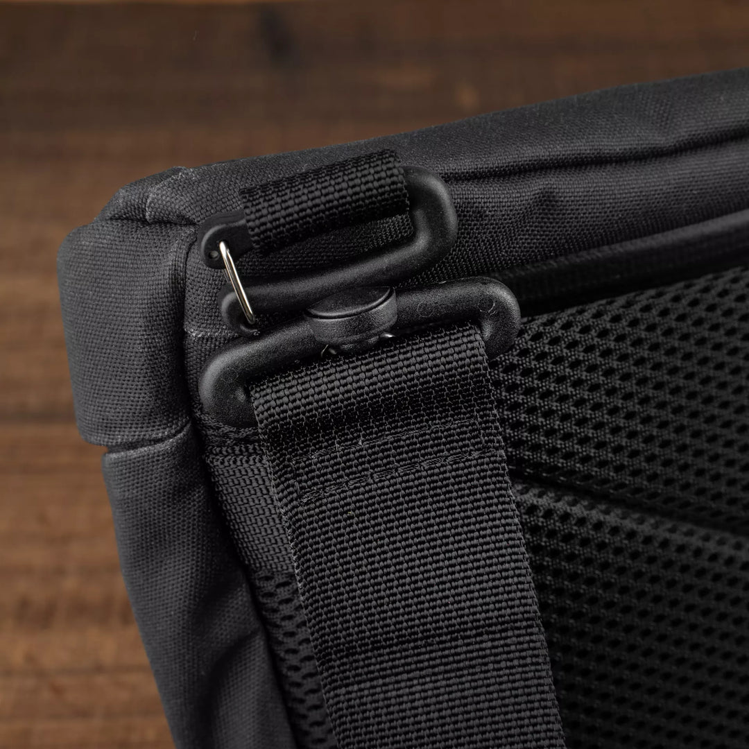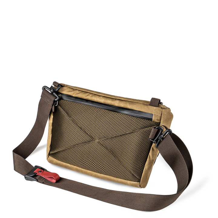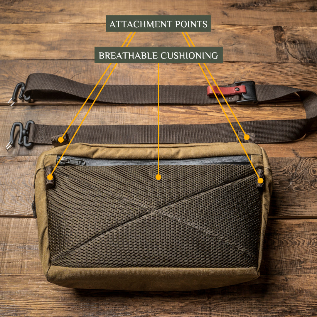 Even when fully packed, the body of the pouch won’t sag, A strengthened pouch structure assures the body will stay firm even when the pouch is not fully loaded. A breathable padding is added to the back improving overall comfort when carrying the bag.
