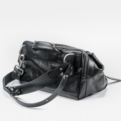 The Rider Series is framed with Dualcoat Water Repellent Nylon 500D Canvas, meaning that the profile side of bags are extremely pliable, capable of extending space in an instant. All it takes is a simple release of the 2 front leather fasteners, to fully release the rectangular interior space.