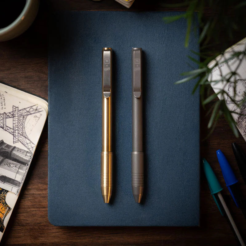 The Sancho Pen is Knafs' first pen design, and we worked with our dear friends Big Idea Design to make it happen. It's available in two materials, brass and titanium, and it includes possibly the most important EDC pen feature you didn't know you needed - each Sancho Pen has a set of metal tweezers and toothpick in the body of the pen hidden near the pocket clip.