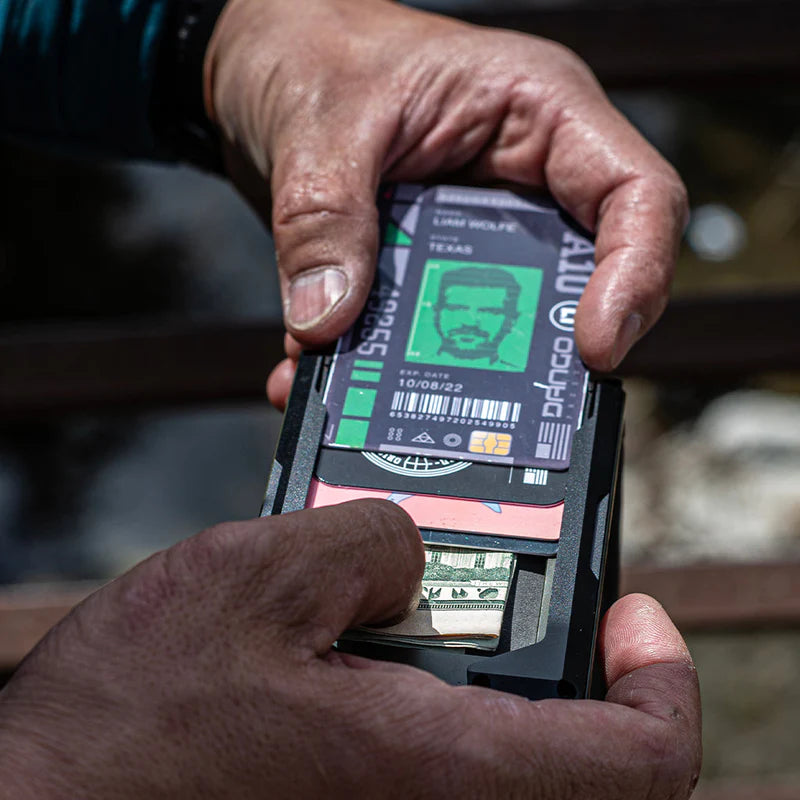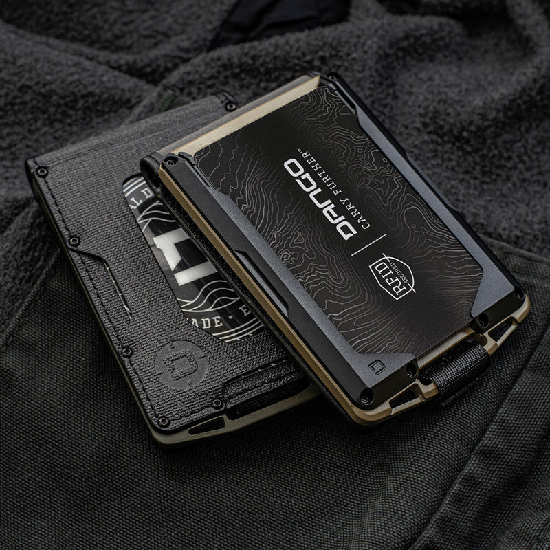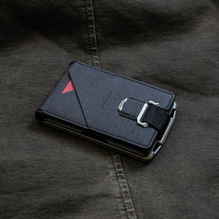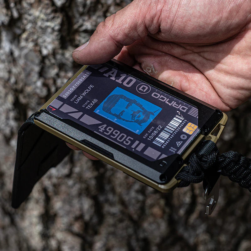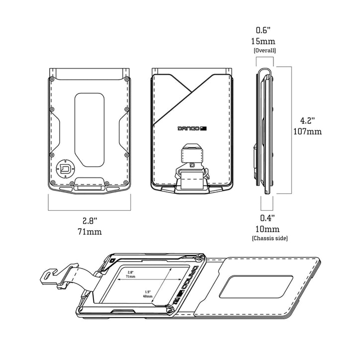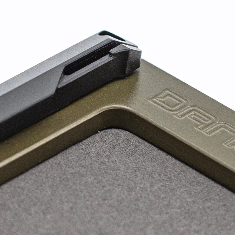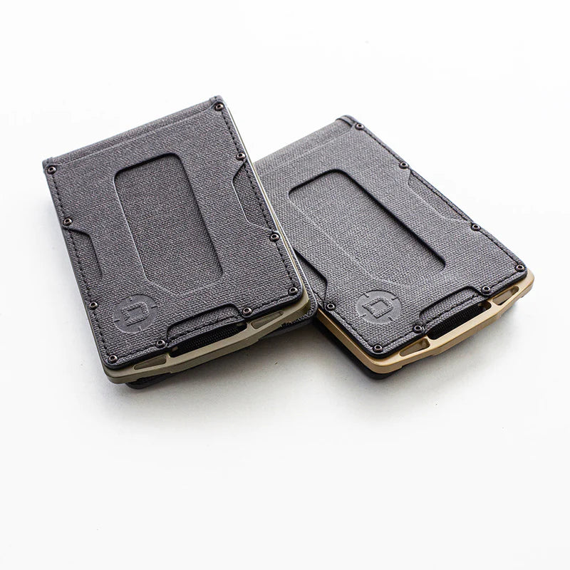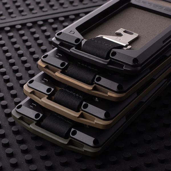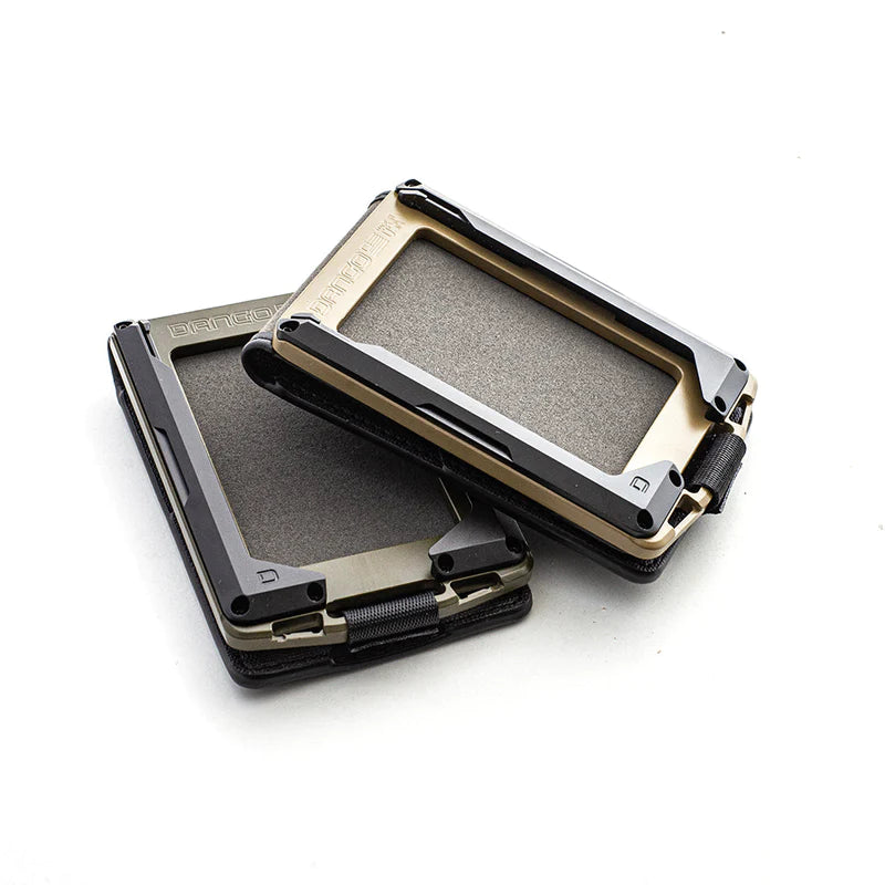 M1 Lite 底盤採用 Cerakote 塗層,將機械加工鋁材提升到一個新的水平。 M1 皮夾的一側是 Dango 的專利導軌系統,最多可容納 4 張卡片。 傳統的 M1 防水 DTEX 雙折口袋用螺栓固定在底盤的另一側,根據卡片厚度,最多可容納 8-10 張卡片。