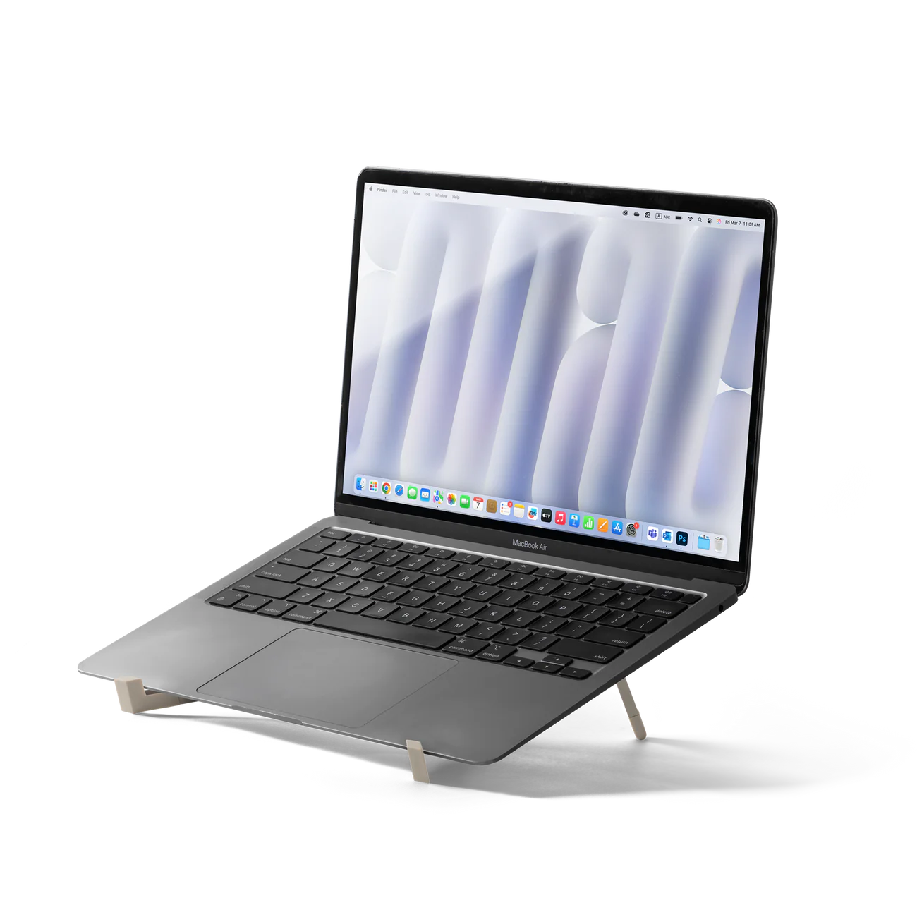 After experiencing the comfort and convenience of our always-on stand, we wanted to create something that worked just as well for all devices, from MacBooks to tablets to laptops with fans that prevent the use of stick-on accessories. Fold Laptop Stand translates the main draws of Rise Laptop Stand - its ultra-thin, lightweight, always-with-you form - into a foldable, just as mobile aluminum solution and probably the slimmest, sleekest metal laptop stand you've seen.