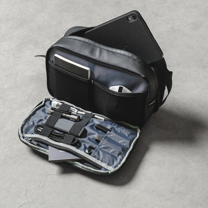 Tech Sling 適應您不斷變化的生活方式。 告別混亂,迎接卓越的組織。 透過其寬敞的內部隔層和平放的工作站前袋來存取您的技術必需品,以保持精心組織。 不再需要在混亂中翻找——一切都有它的位置! 我們的技術套件將多功能性提升到了一個新的水平,得益於其可拆卸肩帶,您可以輕鬆地將其轉變為方便的吊帶,幫助您在移動時保持敏捷和井井有條,同時讓您的技術觸手可及。